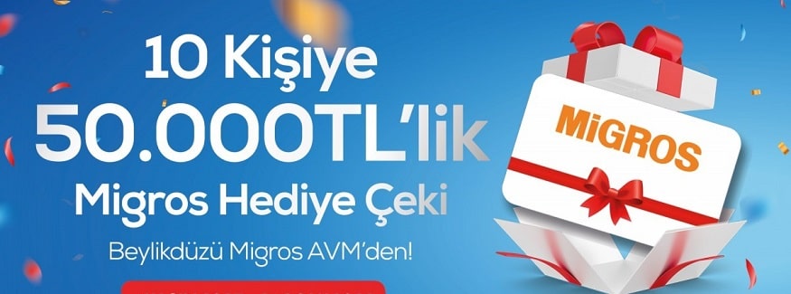 10 Kişiye 50.000,00 TL değerinde Migros Hediye Çeki verilecektir.