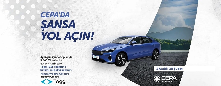 Cepa Avm Togg Çekilişi 11.03.2026 tarihinde noter huzurunda ve halka açık olarak yapılacaktır.