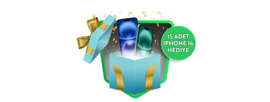 15 Kişiye Apple iPhone 16 128 GB hediye edilecektir.